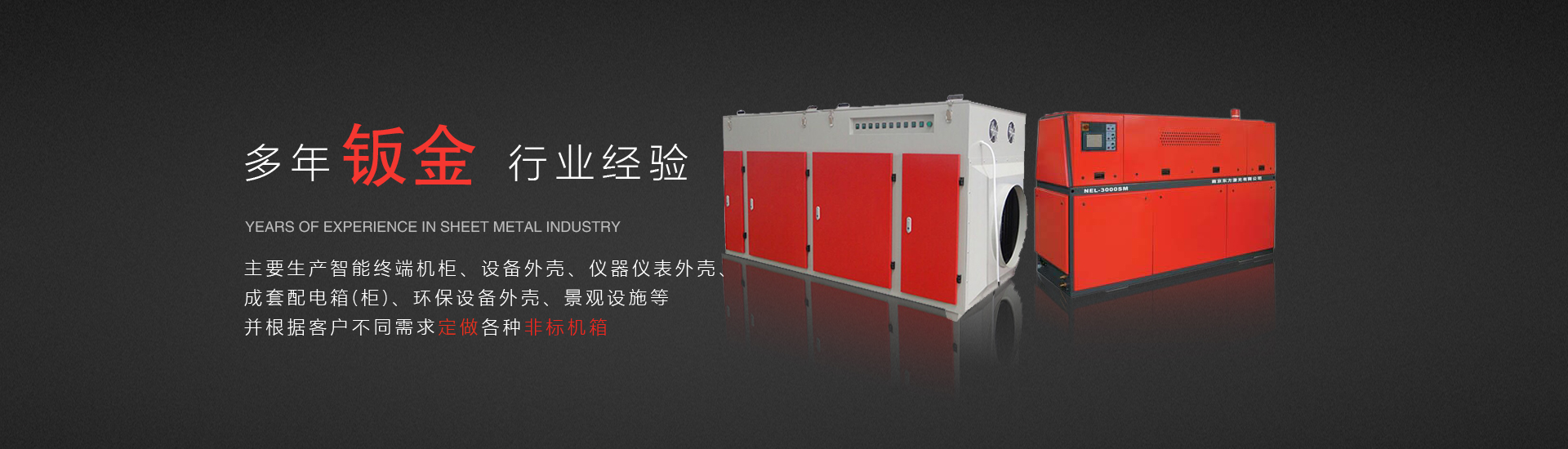 我們是專業制作各種鈑金加工、五金機箱、機柜、控制臺、操作臺、不銹鋼機柜、終端機柜、配電柜、戶內外屏箱等金屬成形產品;五金沖壓,鈑金數控加工、焊接、剪板、折彎等加工制作;承接鈑金生產和設計開發